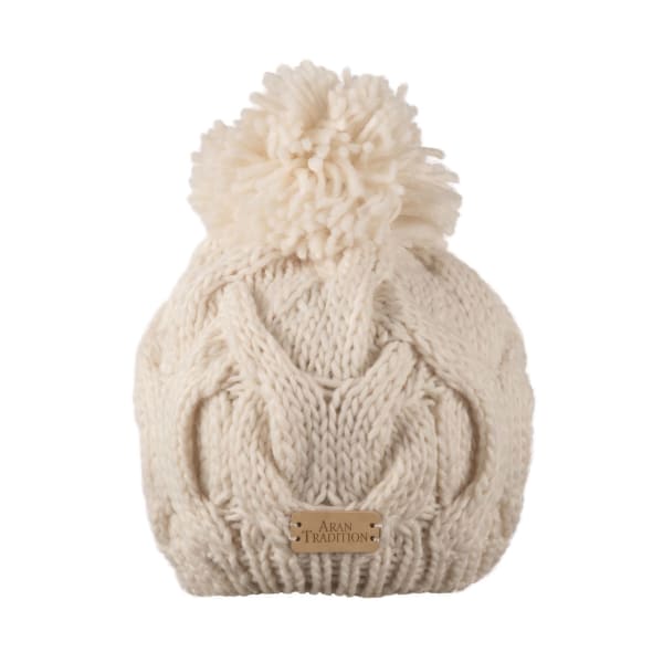 Aran Cable Pom Pom Twist Hat - Cream Wool Mix