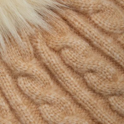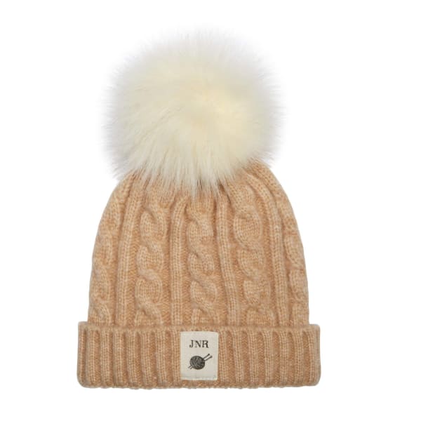 Inactive - Kids Aran Cable Pom Pom Hat - Oatmeal