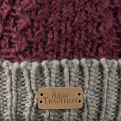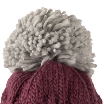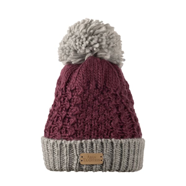 Aran Honeycomb Colour Block Bobble Hat - Mulberry