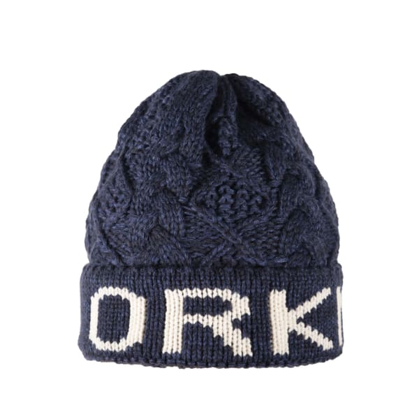 Orkney Diamond Cable Text Beanie Hat - Navy/Cream