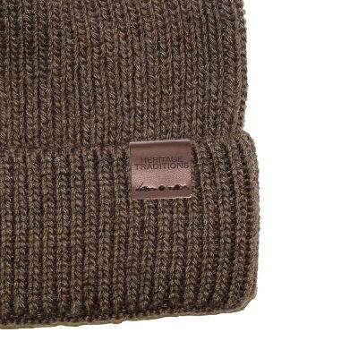 Such a classic, everyone should have as Fisherman Rib Beanie. Our wool mix hat has fully fashioned shape and linked seams for a premium finish. Traditionally worn in the shipyards from the Clyde to the Humber to keep out the biting wind. Wear with the turn up band or roll up for an extra cool 'Dockers' look.s Leather Heritage Traditions fold-over tab - hand stitched on turn up edge. SIZE INFO:One size. 23cm high with a 7cm turn up. Circumference stretch to 64cm. MATERIAL:75% Acrylic 13%s Polyamides 12%s Wool CARE INSTRUCTIONS Hand Wash or Dry Clean