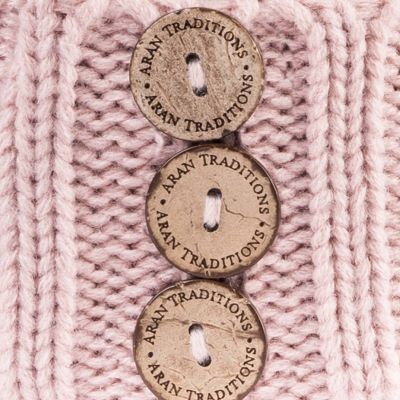 Traditional Diamond Cable design in soft cosy knit hat. Contrast colour Faux Fur Pom Pom gives a contemporary twist. Wide Rib Turn up hem with natural coconut button detail.