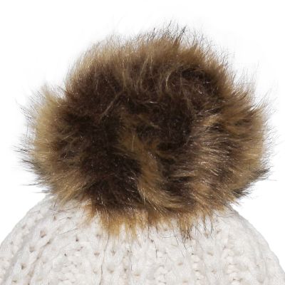 Aran Fisherman Stitch Fur Pom Hat - Cream/Natural