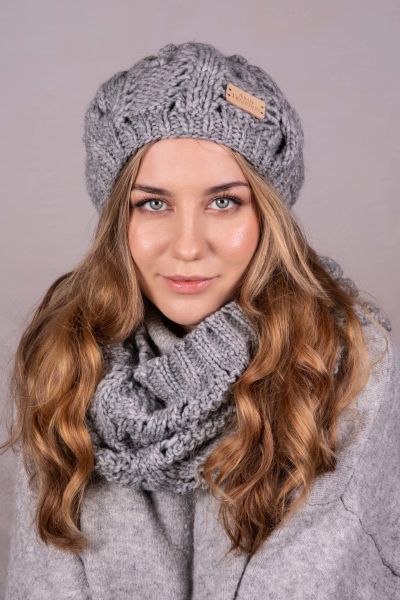 Aran Knit Beret - Grey Marl